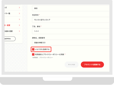 マイページでメルマガ受け取りを許諾