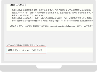 お問い合わせフォームで「各種イベント・キャンペーンについて」を選択