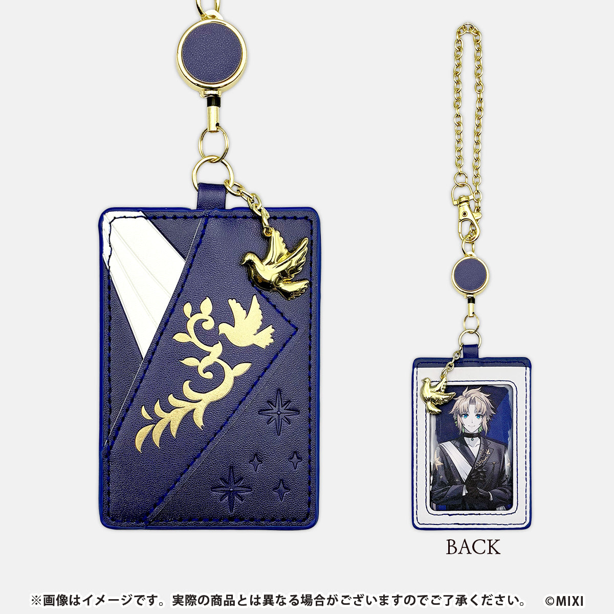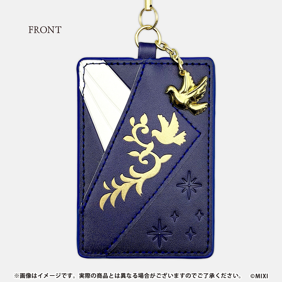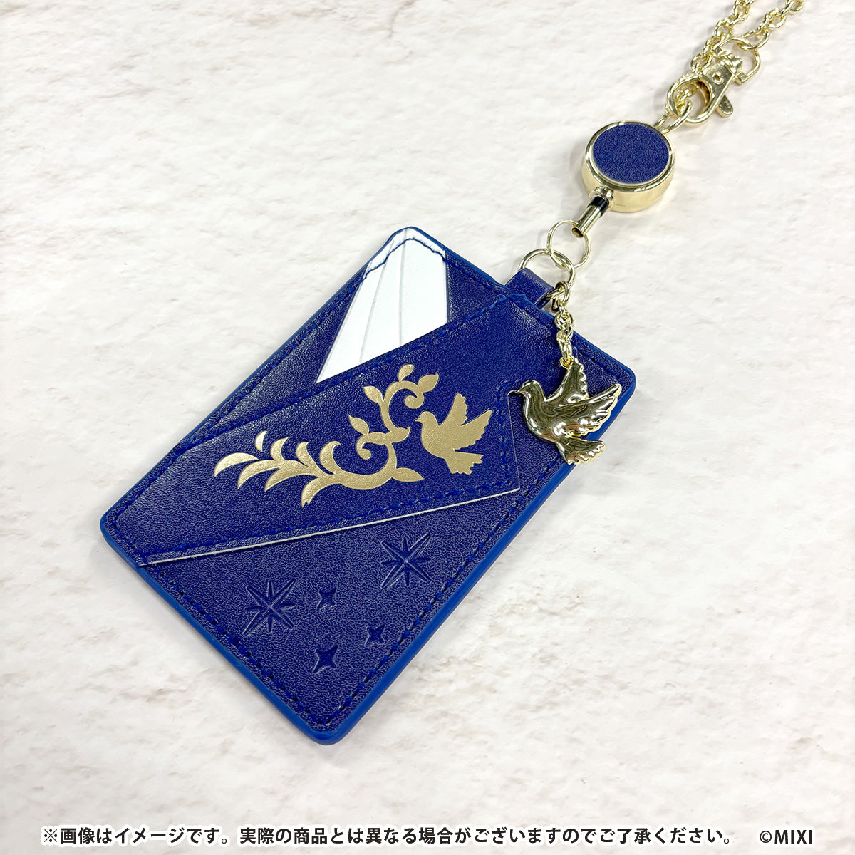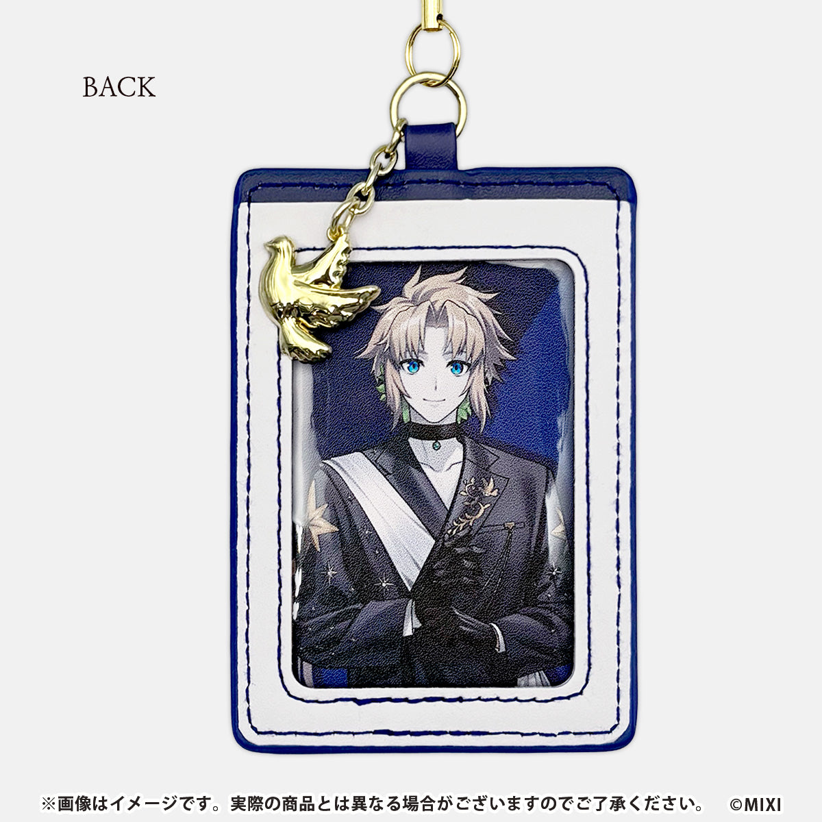 描き下ろしイラストの衣装をモチーフに、配色や質感まで丁寧に落とし込んだノアのパスケース。金属パーツを取り入れることで、キャラクターアイテムでありながら、日常使いしやすい落ち着いた高級感を演出しています。キャラクターごとに異なる象徴的なモチーフをあしらったメタルチャームが付属し、ファン心をくすぐるアクセントに。
