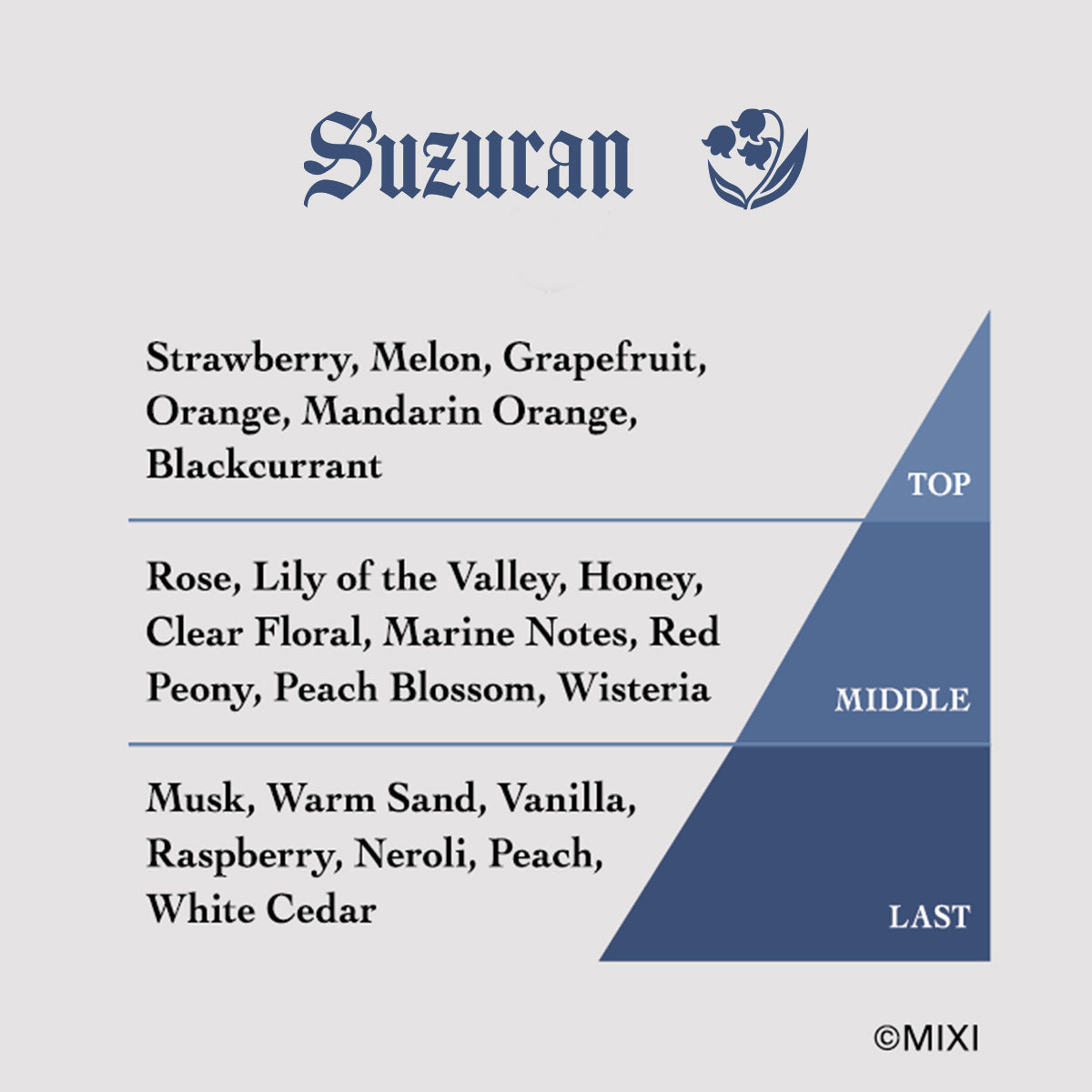 付属のオリジナルムエットカードは、香りを試せる仕様とともに、鈴蘭ならではのセリフを掲載。世界観に浸りながら香りを楽しめます。