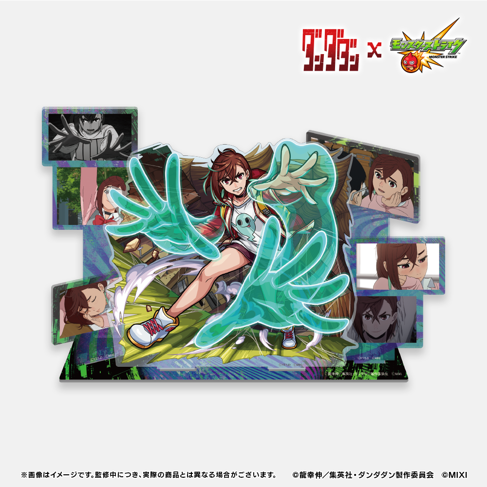 TVアニメ『ダンダダン』×モンスターストライクのコラボから登場するBIGアクリルスタンド。約19cmのモンスト限定描き起こしイラストを、場面写と組み合わせた特別仕様で楽しめます。